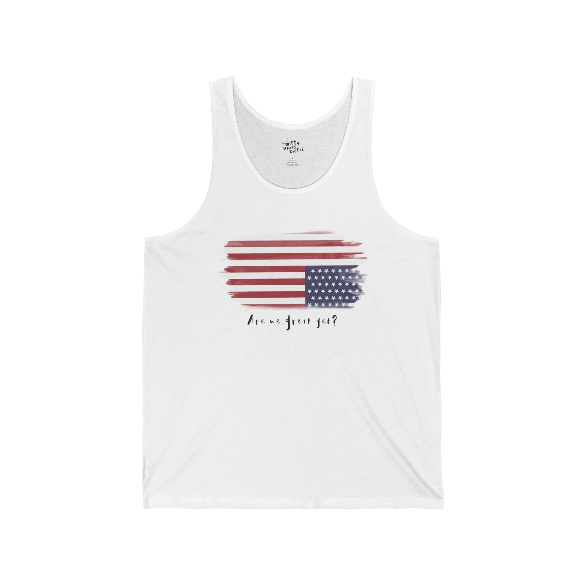 Unisex Jersey “Are We Great Yet?” Patriotic Tank – Available in 4 Colors